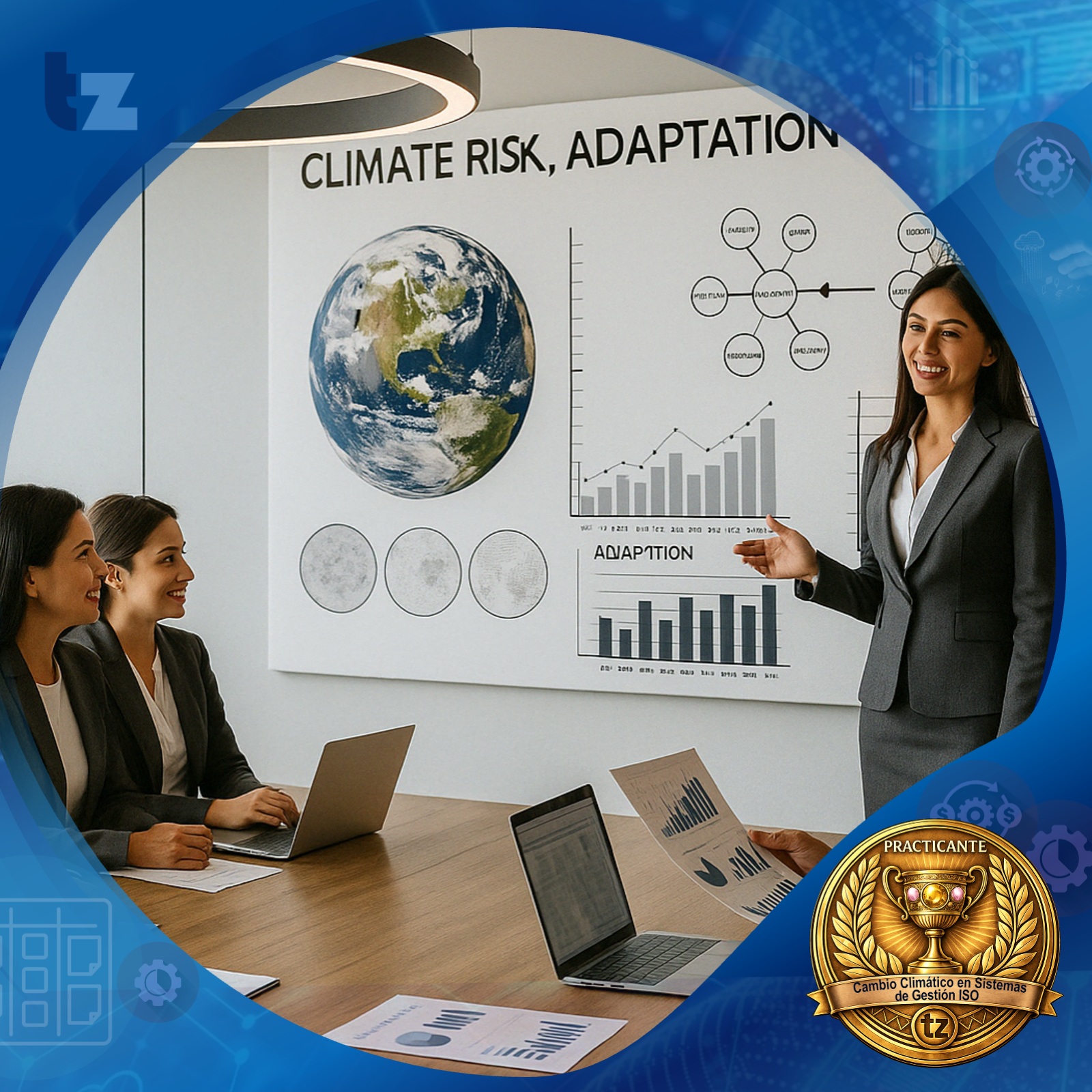 - Aprenderás a evaluar riesgos y oportunidades relacionados con el cambio climático e integrarlos en la planificación estratégica y operativa.